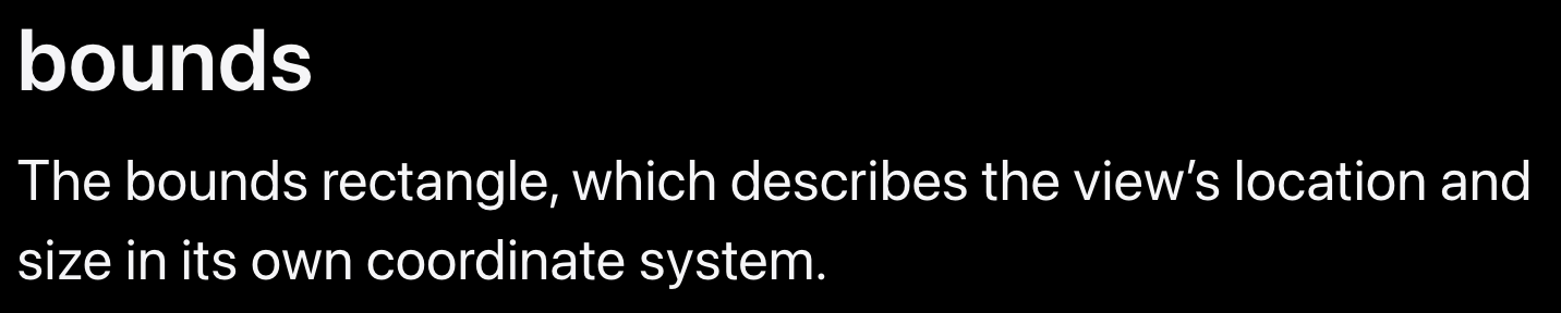 Bounds는 해당 뷰 자체의 좌표계에서의 Location과 Size를 나타내는 직사각형을 의미한다고 나와있네